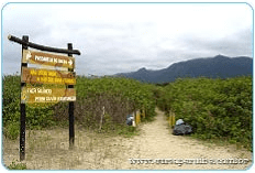 Passarela do “Balça": A passarela do “Balça” (é assim mesmo que se escreve, com Ç), é mais que uma ponte. Trata-se de um dos lugares onde se pode apreciar toda a diversidade de um dos mais ricos ecossistemas: o mangue. Em um local bem sinalizado, com lixeiras, é possível se avistar o rio, o mar, as montanhas e a vegetação típica. Além disso, avistam-se “famílias” de caranguejos e aves da região. Não deixe de conhecer. Para chegar ao local, siga na Estrada do Telégrafo (Guaraú) até a placa “Pousada do Balça”.